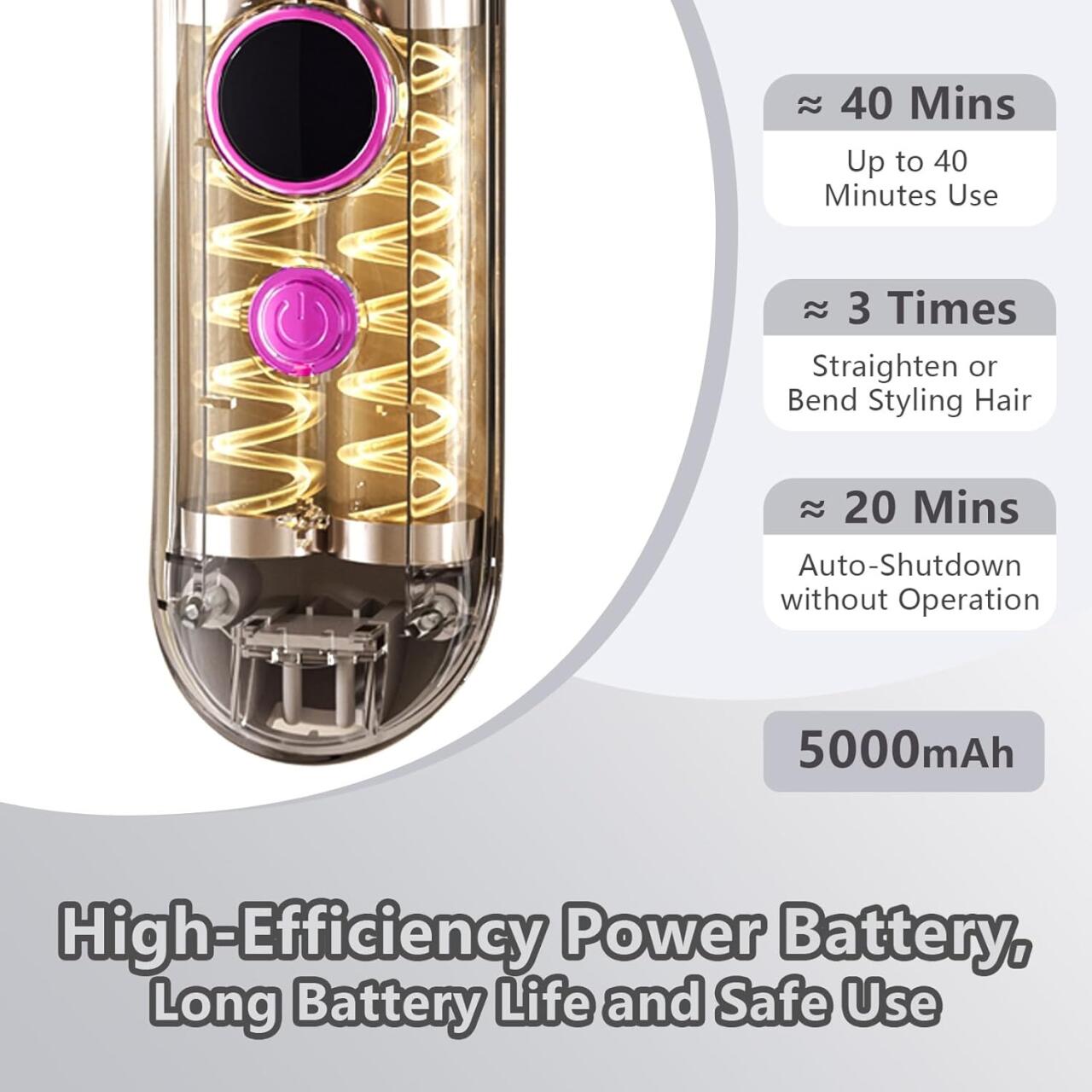 9 niveles de temperatura ajustables: adecuado para diferentes tipos de cabello, con pantalla LCD para monitorear la temperatura y la batería.