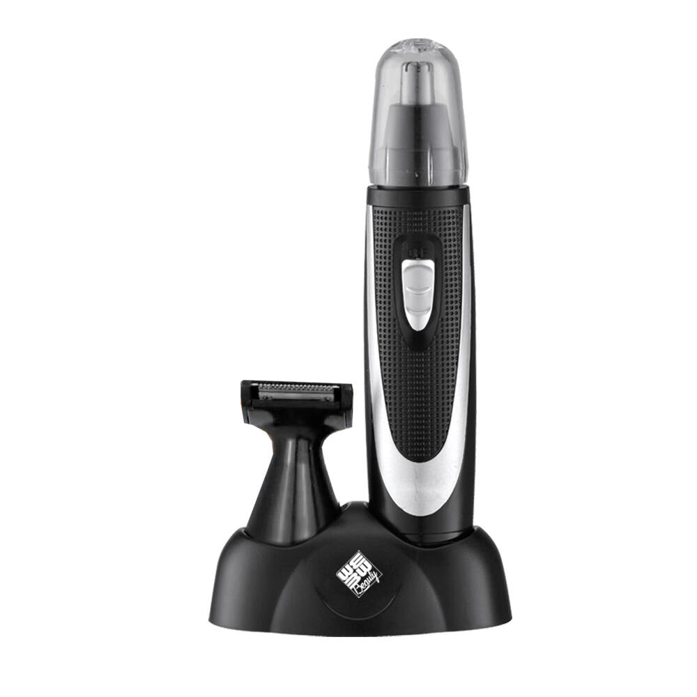 Recortadora de barba. Accesorio para nariz y orejas. 1 Cepillo de limpieza. Tapa protectora. Soporte.