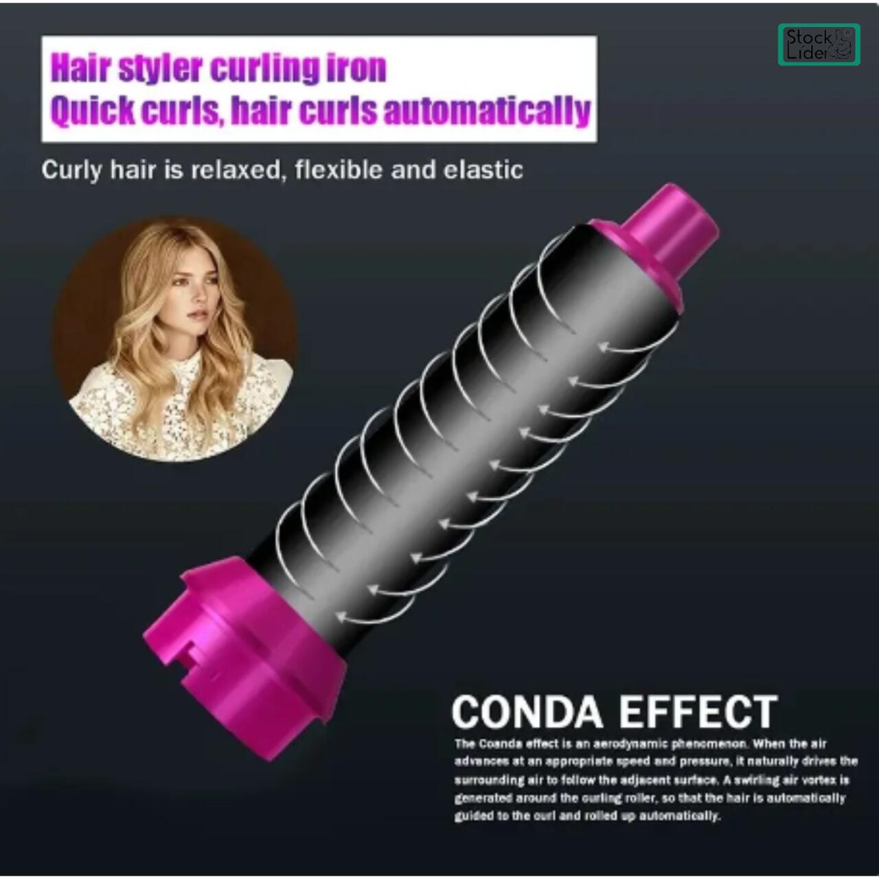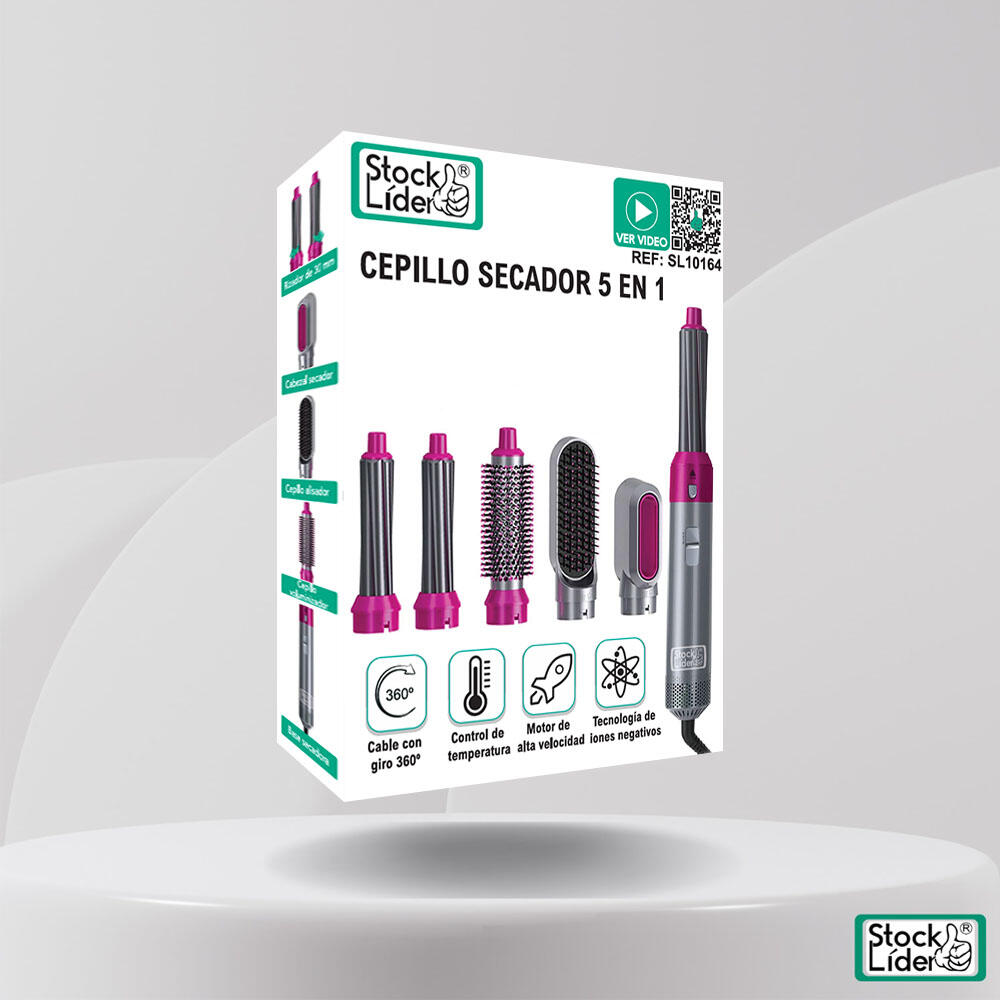 Con nuestros cinco accesorios diferentes, podrás crear distintos estilos de rizos. Ya sean rizos definidos, ondas suaves o rizos voluminosos, nuestro rizador transforma tu pelo en obras maestras únicas. Cada accesorio está especialmente diseñado para añadir volumen, textura y movimiento a tu pelo. Tipos: Rizador giratorio: Este cabezal sería ideal para crear rizos grandes y definidos. El cabezal giratorio facilitaría el peinado uniforme del cabello. Secador: Este cabezal sería el más básico y permitiría secar el cabello de forma rápida y sencilla. Cepillo redondo: Este cabezal sería ideal para alisar el cabello o crear ondas suaves. El cepillo redondo ayudaría a distribuir el calor de forma uniforme por el cabello. Cepillo plano: Este cabezal sería ideal para alisar el cabello de forma rá pida y eficiente. El cepillo plano ayudaría a alisar el cabello sin dañarlo. Te encantará lo rápido que se calienta y lo rápido que puedes empezar a peinarte. Sólo tienes que seleccionar el accesorio que desees, calentarlo a la temperatura que prefieras y dejar que nuestra herramienta haga su trabajo. Gracias a nuestra avanzada tecnología térmica, el calor se distribuye uniformemente para dar forma rápidamente a sus rizos sin dañar el cabello. Nuestro rizador no sólo ofrece resultados rápidos y suaves, sino que también garantiza rizos duraderos. Los rizos se mantienen definidos durante todo el día y se pueden fijar con laca. Tienes control total y puedes elegir la dirección de tus rizos hacia dentro, hacia fuera o en diferentes direcciones para crear el look que desees.